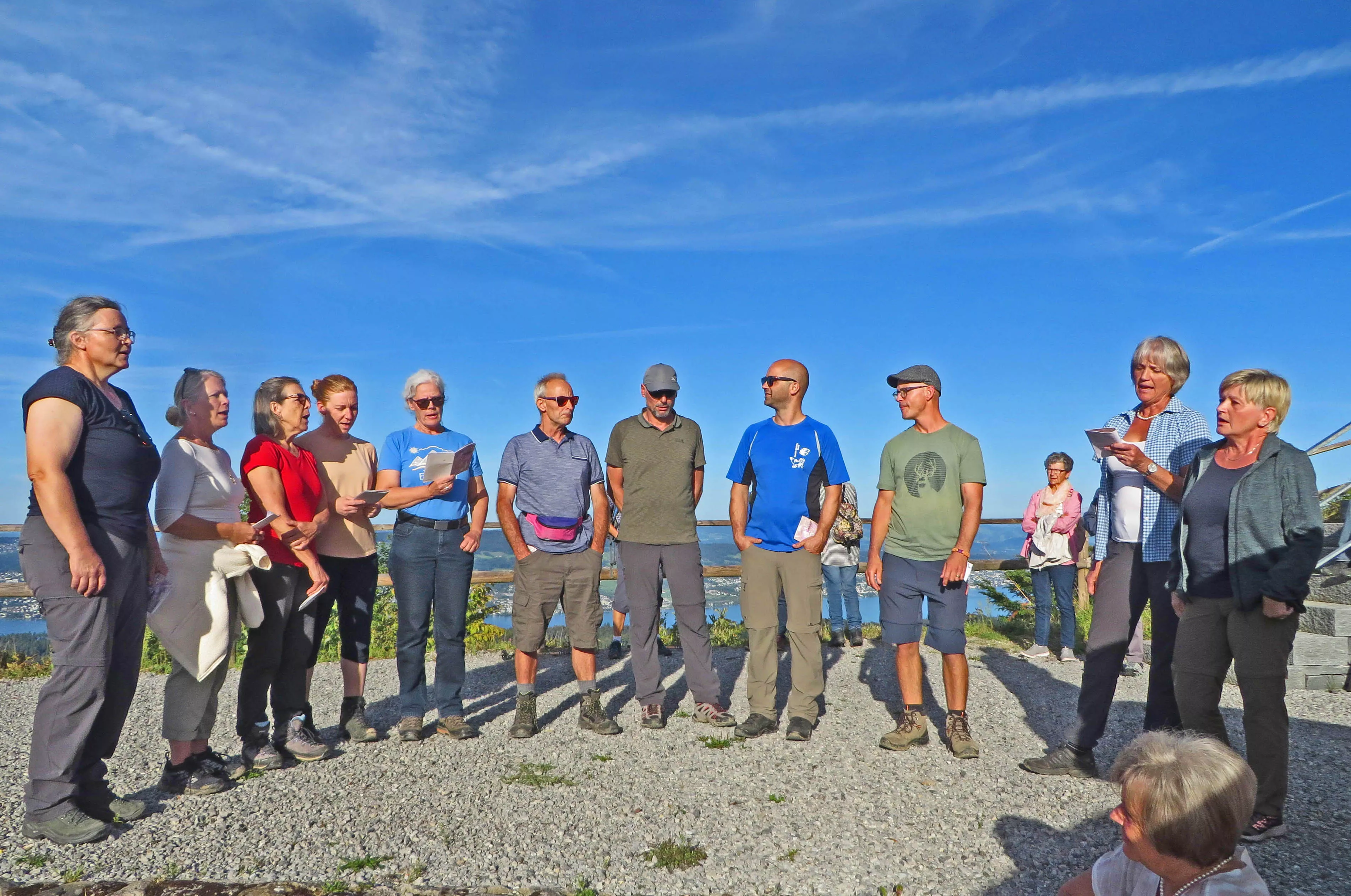 Anschliessend machten sich alle, wieder in Gruppen, auf zum zweiten Teil der Wanderung. Zum Abschluss trafen sich alle beim Restaurant Albishorn und liessen sich wieder mit einem Dessert-Buffett verwöhnen. Dabei durften sie eine schöne Gesangsdarbietung von elf Mitgliedern des Singtreffs, die auch an der Wanderung mitgemacht hatten, geniessen. Mit der Heimfahrt in den fünf Bussen endete dieser wunderschöne Wandertag.